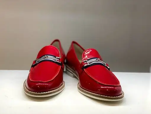 Upeat katseenkääntävät lakerinahkaiset kävelykengät. Päällä yksinkertainen metallisomiste, jonka alla hopea-sininen nauha. High Soft pohjallinen mukautuu jalkasi muotoon. Lisäksi pohjallisessa on holvikaaren tuki. Pohja on joustava ja vaimennettu. Matala korko on raitakuvioitu.