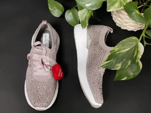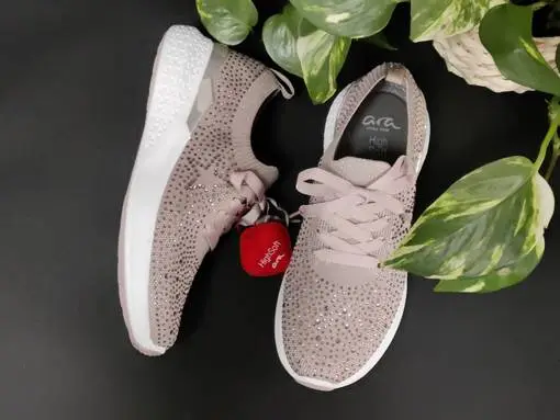 Joustava puuterinpunertava tennari on kuorrutettu eri kokoisilla strasseilla. Metallikoriste kannassa on näyttävä yksityiskohta. Poikkeuksellisen mukava High Soft -pohjallinen tukee ja pehmittää askelta. Irrotettavan pohjallisen ansiosta kenkään sujahtaa näppärästi oma pohjallinen.