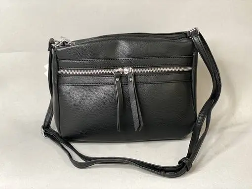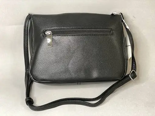 Pieni musta Brunelli laukku. Laukun etupuolella on vetoketjullinen sivutasku, jossa kaksi vedintä. Takapuolella vetoketjullinen sivutasku. Sisäpuolella vetoketjullinen sivutasku sekä vetoketjuton sisätasku. Säädettävä nahkainen olkahihna.