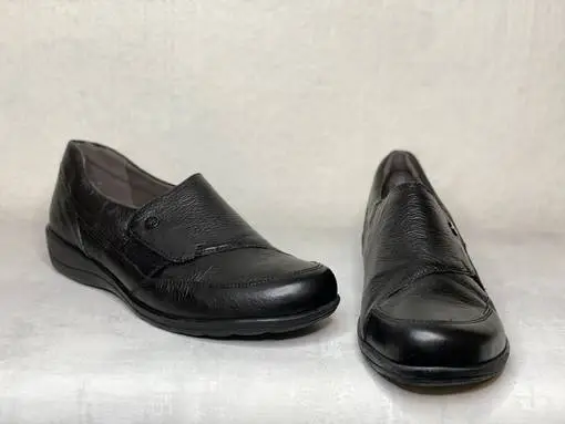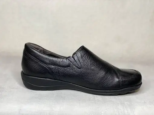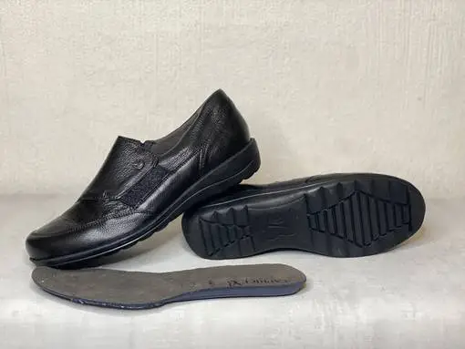 Mustat nahkaiset Caprice kävelykengät. Ulkosyrjällä pukemista helpottava ja istuvuutta parantava venyke. Vaihdettava pohjallinen, jonka tilalle sujautat tarvittaessa omaan jalkaasi parhaiten sopivan pohjallisen. H lesti.