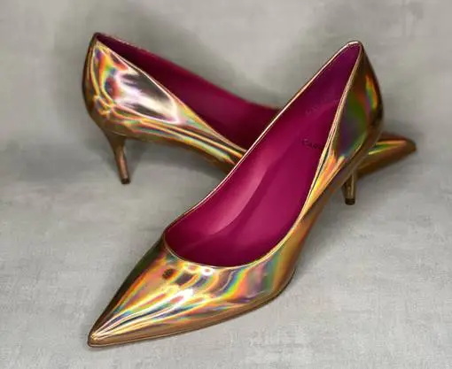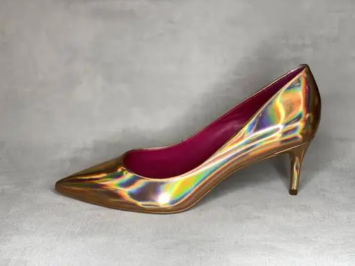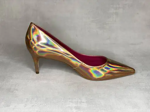 Upeat sateenkaarensävyissä valoa taittavat Carrano Ultra Gold avokkaat. Klassiset avokkaat ovat saaneet upean värin lisäksi tyylikkään terävän kärjen ja kapean naisellisen koron kantansa alle. Kullanhohtoinen pinta heijastaa upeasti valoa. Kannan korkeus noin 6,5cm.
