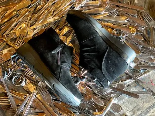 Clarksin kiilapohjainen kävelykenkä, jonka vetoketju on sijoitettu yksityiskohdaksi kengän ulkosyrjälle. Pohjallinen on irrotettava, joten tarvittaessa voit sujauttaa kenkään omaan jalkaasi parhaiten sopivan pohjallisen. Kannan korkeus noin 3,5cm, pohja edestä noin 2cm.