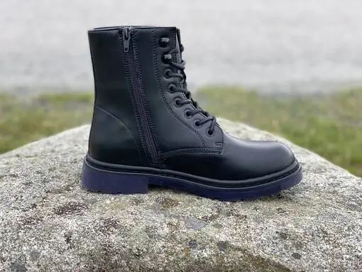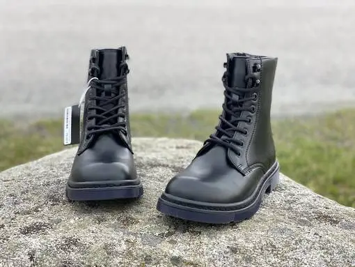Mustat Dockers maiharit. Perinteiset mustat maiharit on helppo yhdistää monenlaisiin asukokonaisuuksiin. Sisäsyrjältä löytyy pukemista helpottava vetoketju ja nauhojen avulla kengät on helppo säätää omiin jalkoihin sopiviksi. Maihareihin saa helposti lisäilmettä vaihtamalla niihin värikkäät kengännauhat.