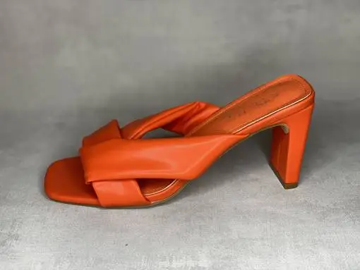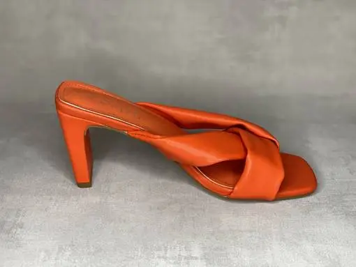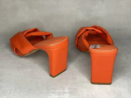 Huomiotaherättävän neon-oranssit Duffy sandaalit. Leveä korko on 8cm korkea.