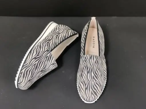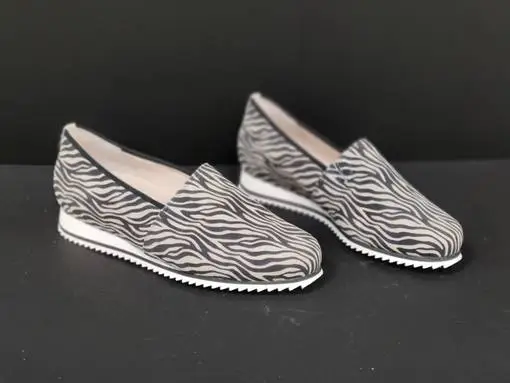 Eläimellistä menoa elämääsi näillä Hassian seepra-kuvioisilla kiilapohjaisilla loafereilla. Yhdistä yksivärisiin tai koosta asukokonaisuuteesi rohkea yhdistelmä erilaisista kuoseista.