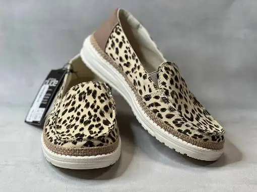Leopardikuvioiset Heydude Lena leopard angora kävelykengät. Kannassa vaaleanruskea aksenttiväri. Päälisen ja pohjan taitekohtaa kiertää punoskuvio. Leveä lesti ja vaihdettava pohjallinen, joten tähän kenkään sujahtaa vaivattomasti omaan jalkaasi parhaiten sopivat pohjalliset! Mokkasiinimaisen rakenteen vuoksi kengässä on varpaille runsaasti tilaa.