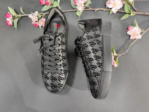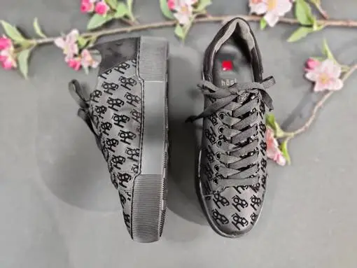 Upea nahkainen nauhatennari Höglin mallistosta. Pinta on koristettu samettisentuntuisilla Högl-teksteillä. Tasapaksu pohja on noin 3cm korkea.
