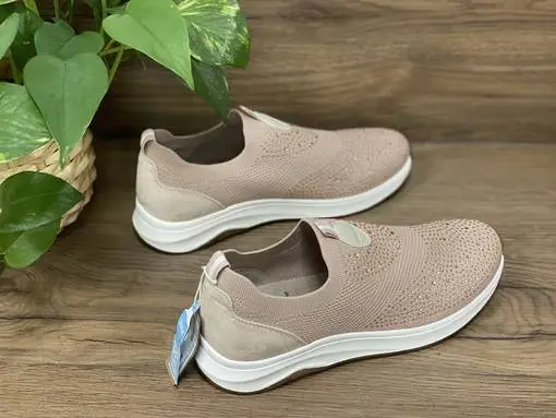 Puuteriroosat leveäslestiset Janan venyketennarit upeasti kimaltavin strassiyksityiskohdin. Pehmeä sisäpohja ja sopivasti joustava ulkopohja.