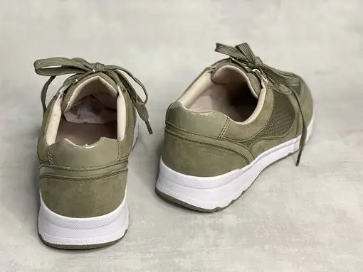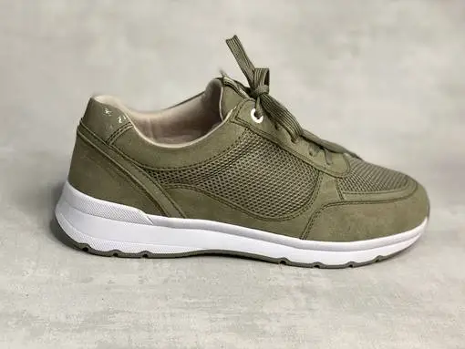 Pistaasinvihreät Jana tennarit. Leveä H-lesti ja pehmeä Soft Line pohjallinen. Nauhoilla kenkä säätyy sopivaksi omaan jalkaan.