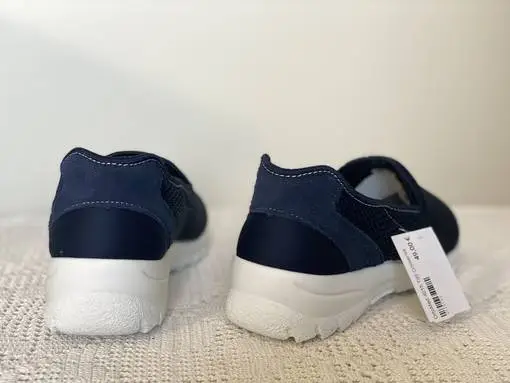 Tummansiniset Ortomed tekstiiliset kävelykengät ovat ihanan kevyet! Kengissä on leveä lesti, vaihdettava pohjallinen ja kuvioitu ulkopohja. Pehmeä Ortomed pohjallinen on vaihdettava, joten kenkään sujahtaa vaivattommasti omia tarpeitasi parhaiten vastaava pohjallinen.