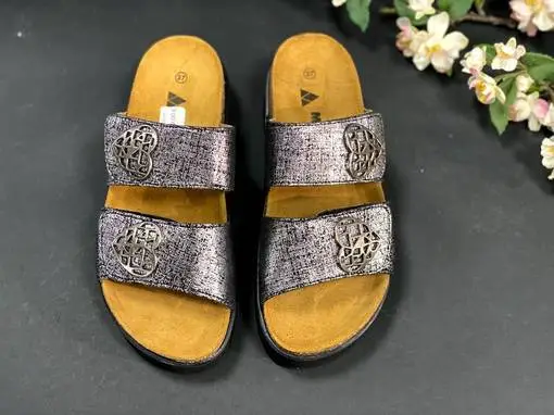 Maahisen klassiset, paksupohjaiset pistokkaat pienellä kiilakorolla. Pintamateriaaliltaan kengät ovat hopeakuvioitua nahkaa. Kengän istuvuutta voi säätää kahdella tarraremmillä. Remmeissä on näyttävänä yksityiskohtana hopeanväriset sydänkoristeet. Kengän kantapäissä on askellusta vaimentavat ilmatyynyt. Mikäli kantapääsi tai jalkapohjasi kipeytyvät helposti, nämä jalkineet ovat melko varma valinta. Sisäpohja on muotoiltu jalkaa tukevaksi.