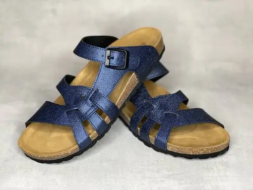 Metallinsiniset kiiltävät Maahiset työsandaalit