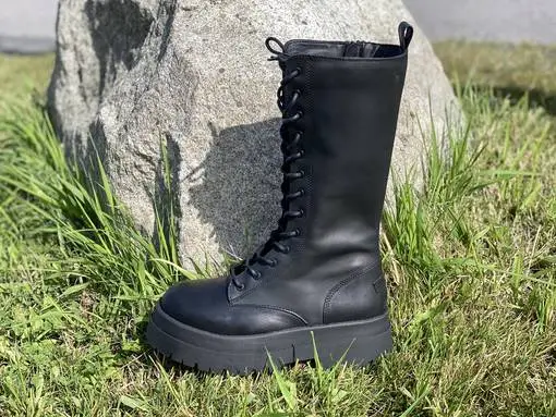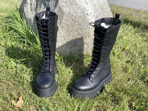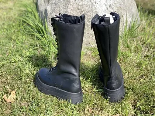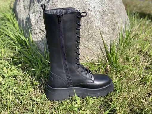 Mustat pitkävartiset Musse & Cloud Alen maiharit. Sisävuosi ruutukuvioitua tekstiiliä. Sisäsyrjällä pukemista helpottava vetoketju.