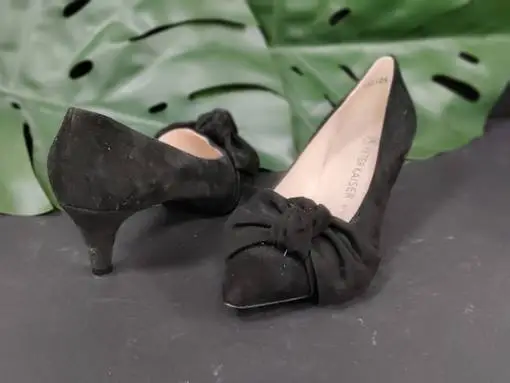 Matalakorkoinen klassinen avokas näyttävällä rusettikoristeella. Kengän pinta ja vuori ovat molemmat nahkaa. Koron korkeus noin 5cm.