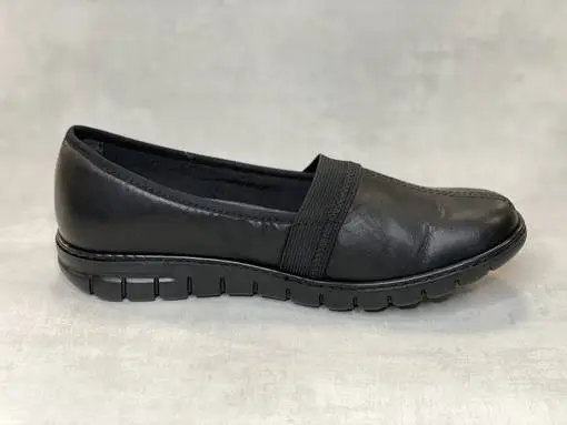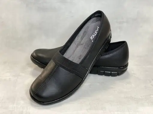 Klassiset mustat Pomar Selja kävelykengät vaihdettavalla pohjallisella. Kevyt ja joustava malli. Mukavuuspohjallinen tukee ja suojaa jalkaa, voit myös vaihtaa sen tilalle oman pohjallisen. Joustava venyke parantaa istuvuutta.