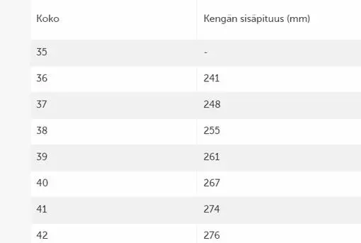 - Tarkista kokotaulukko kuvien kokotaulukosta – jos kokosi on kahden koon välillä, Pomar suosittelee valitsemaan pienemmän koon.