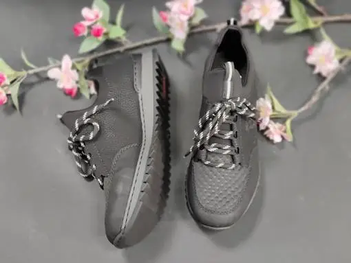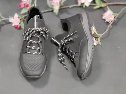 Musta nauhallinen tennari. Kärjessä on ihana kuplat mieleen tuova kohokuviointi. Pehmeä pohjallinen. Kannan korkeus noin 3cm, pohjan korkeus edestä noin 1,5cm.