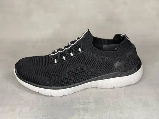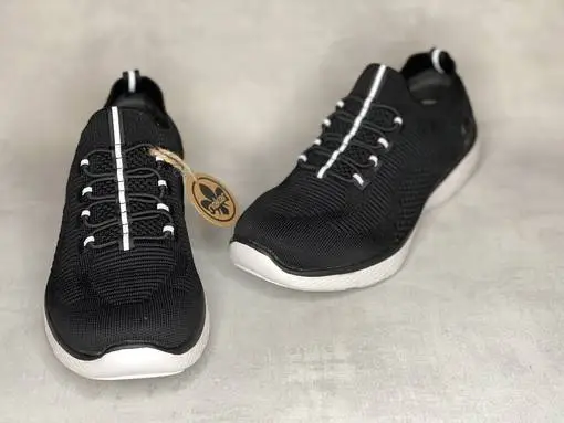 Mustat Sneaker by Rieker tennarit. Joustava tekstiilipinta, kiinteät venykenauhat ja heijastavat yksityiskohdat kannassa sekä nauhoituksen lomassa. Valkoinen ulkopohja. Pehmeä Memosoft pohjallinen mukautuu jalkasi mukaan ja pehmentää askelta.