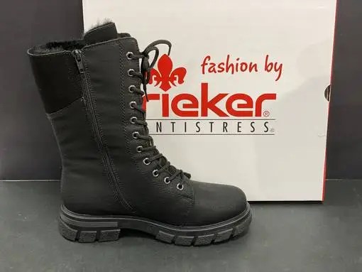 Pitkävartisessa mustassa maiharissa on koristevetoketju ulkosyrjällä ja pukemista helpottava vetoketju sisäsyrjällä. Nauhoilla kenkä säätyy omaan jalkaan istuvaksi. Pörheä sisävuori pitää jalat lämpiminä.