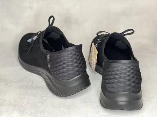 Mustat nauhalilset Skechers Ultra Flex 3.0 Briliant Path Slip ins-lenkkarit! Slip-ins kenkälusikkakannan ansiosta kenkä sujahtaa jalkaan helposti ja vaivattomasti! Kantapäässä neopreenivahvike, joka muotoutuu kantapään ja akillesjänteen luonnolliseen kaareen. Air Cooled Memory Foam sisäpohja on kevyt, muotoutuu jalan mukaan, vaimentaa iskuja ja tuo helpotusta kipeille jaloille. Kenkien joustava pinta mukailee jalkaa täydellisesti.