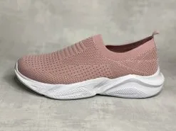 Vaaleanpunaiset Strollers venykelenkkarit, sukkatennarit, millä nimellä näitä haluatkaan kutsua! Kenkä sujahtaa sujuvasti jalkaan joustavan kengänsuun ansiosta. Kengän ulkopohja on valkoinen.