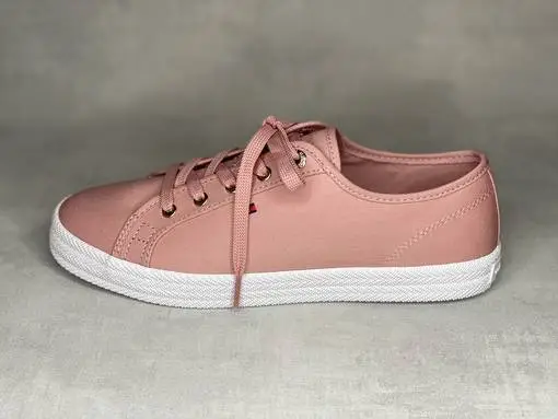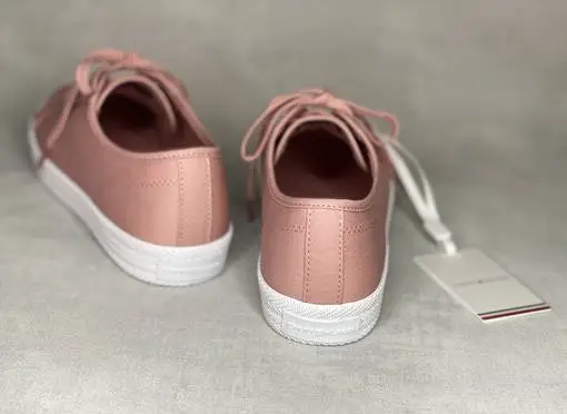 Vaaleanpunaiset Tommy Hilfiger Essential Vulcanized sneaker – Soothing Pink tennarit! Klassiset nauhalliset, matalavartiset tennarit valkoisella ulkopohjalla. Ulkosyrjällä myös pieni sini-puna-valkoinen Tommy Hilfiger logo. Vaihdettavat pohjalliset, joten tarvittaessa kenkiin sujahtavat omiin jalkoihisi parhaiten sopivat pohjalliset.
