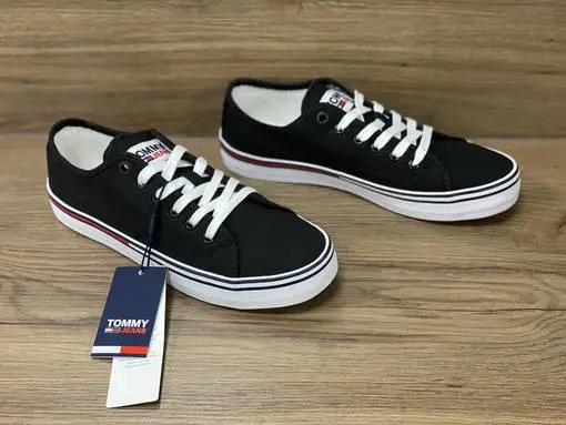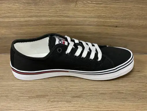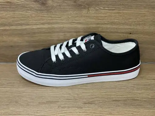 Mustat matalavartiset Tommy Jeans tennarit. Pohjan kannassa kivana yksityiskohtana kolmivärinen raita.