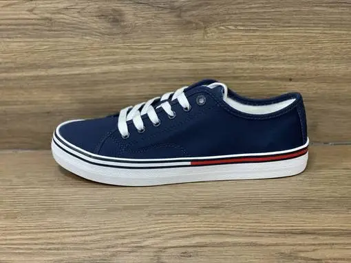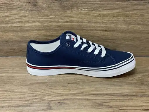 Laivastonsiniset matalavartiset Tommy Jeans tennarit. Pohjan kannassa kivana yksityiskohtana kolmivärinen raita.
