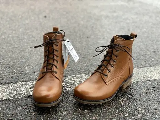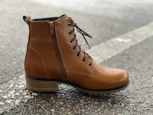 Ruskea varrellinen nahkanilkkuri. Topman on suunnitellut nämä upeat jalkineet suomalaiseen jalkaan sopiviksi. Lestiltään tämä kenkä on leveä. Sisävuori on villasekoitetta, joka auttaa pitämään jalat lämpiminä. Kannan korkeus on varsin maltillinen 4cm, pohjan korkeus edestä noin 1,5cm.