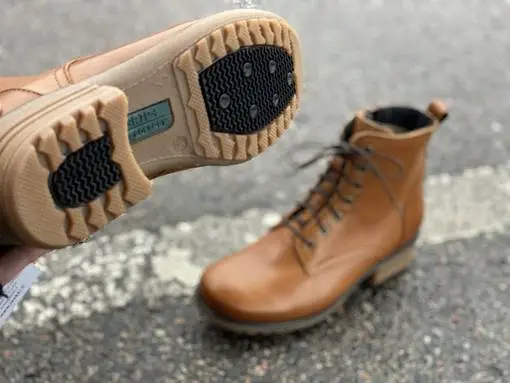 Grip+ by Solepex – pohjissa kovan ja pehmeän materiaalin yhdistelmä takaa jalkineeseen ylivoimaisen pidon ja käyttömukavuuden! Pohjassa eri tasoissa olevat kuviolamellit maksimoivat kitkan kaikkiin suuntiin. Lamellien avulla saadaan myös pohjan ja alustan välistä kontaktiaikaa pidennettyä. Kun pohja osuu maahan, nastat ja lamellit painuvat kasaan ja tulevat paineen alaisiksi. Kävellessä joustavat nastat ja lamellit saattavat muita pohjia pidempään askellusta ja lisäävät näin pitoa alustaan. Avoimet urat kuljettavat nesteen pois pohjan ja alustan väliltä estäen liukkaan kalvon muodostumisen. Pehmeä TR-kumi toimii tehokkaana iskunvaimentimena. Grip+ by Solepex -pohjat tuovat talvirenkaista tuttua teknologiaa ja turvallisuutta pohjoisiin oloihin.