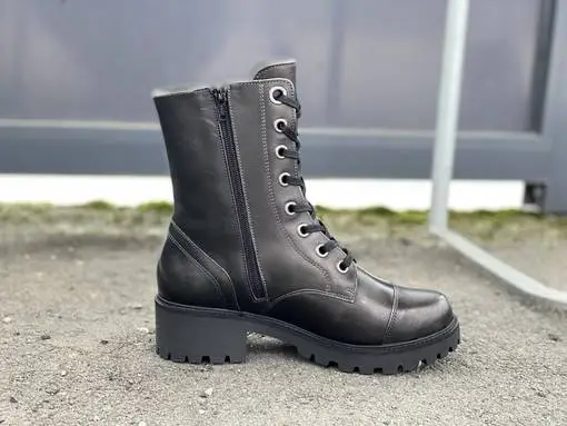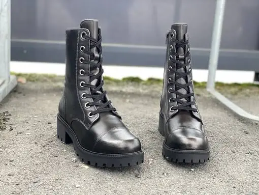 Vintron kestosuosikki maihari, tällä kertaa upeassa metallinhohtoisessa tummanharmaassa sävyssä. Paksu pohja on edelleen trendikäs valinta. Nauhoilla kenkä säätyy upeasti omaan jalkaan ja sisäsyrjän vetoketju helpottaa pukemista. Tämä maihari on laadukasta nahkaa ja se on kyllästetty vettähylkiväksi. Tämä kyllästys tulee uudistaa säännöllisesti esim. Pedag Waterproofer suojasuihkeella. Kengän vuori on lämmintä ja hengittävää villasekoitetta